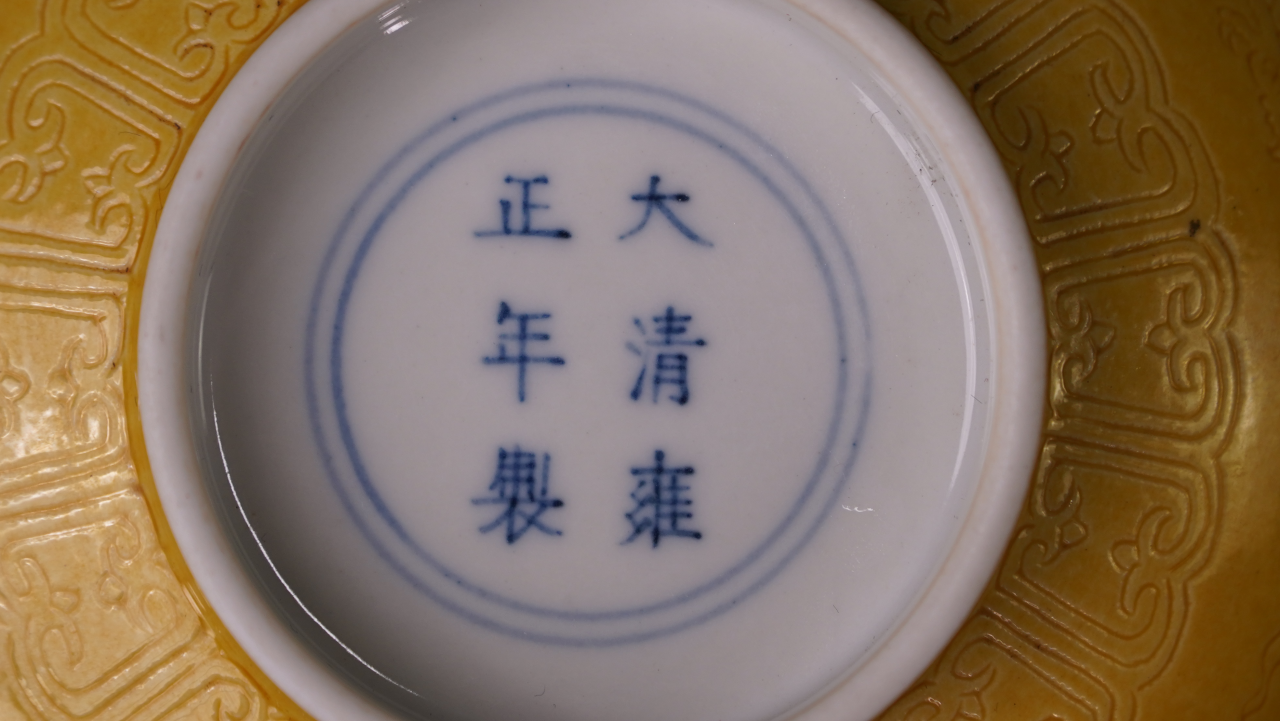 名稱:清雍正黃釉暗刻龍紋碗一對