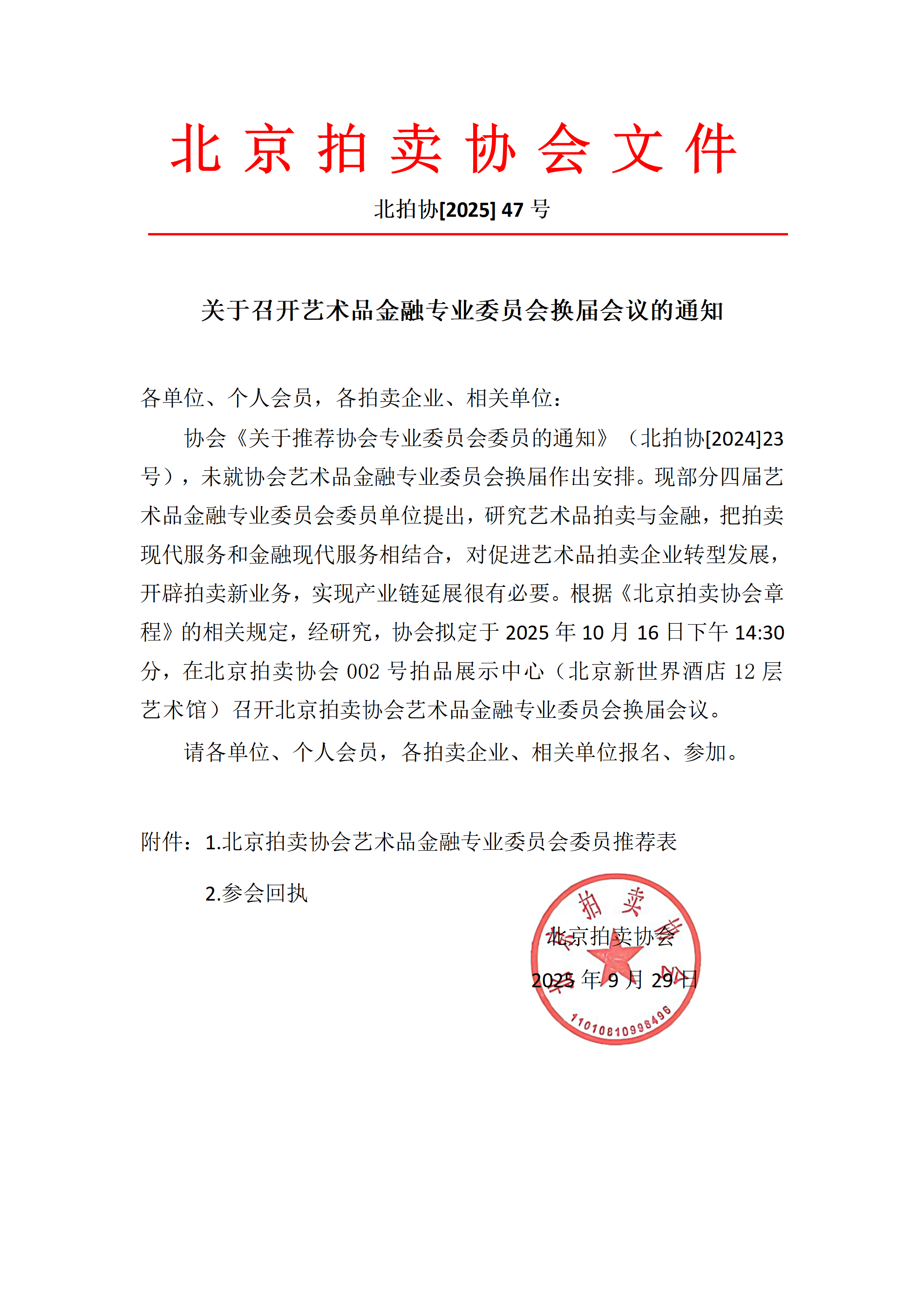 關(guān)于召開(kāi)藝術(shù)品金融專業(yè)委員會(huì)換屆會(huì)議的通知