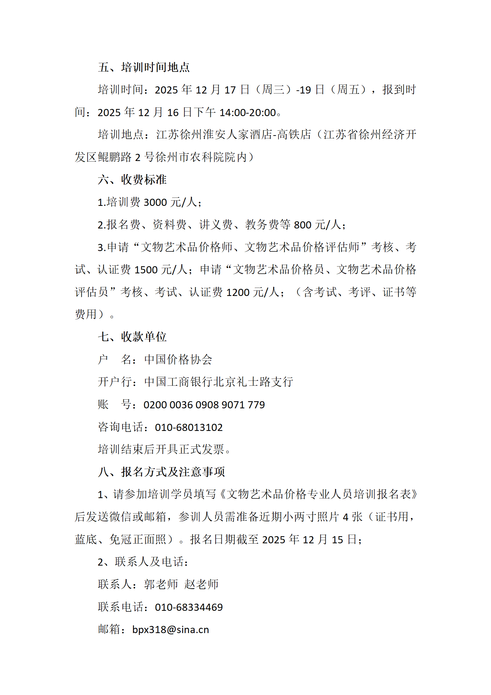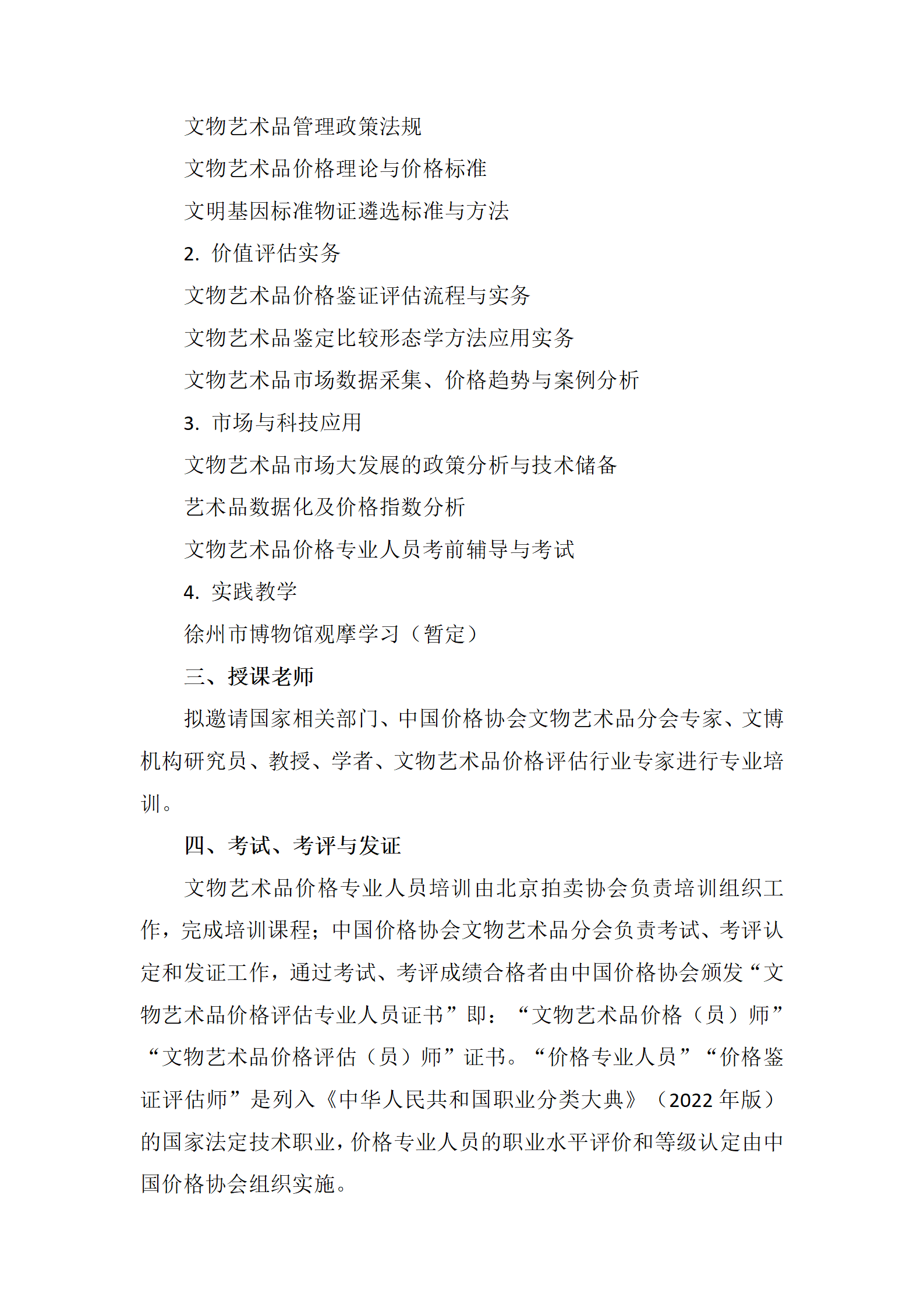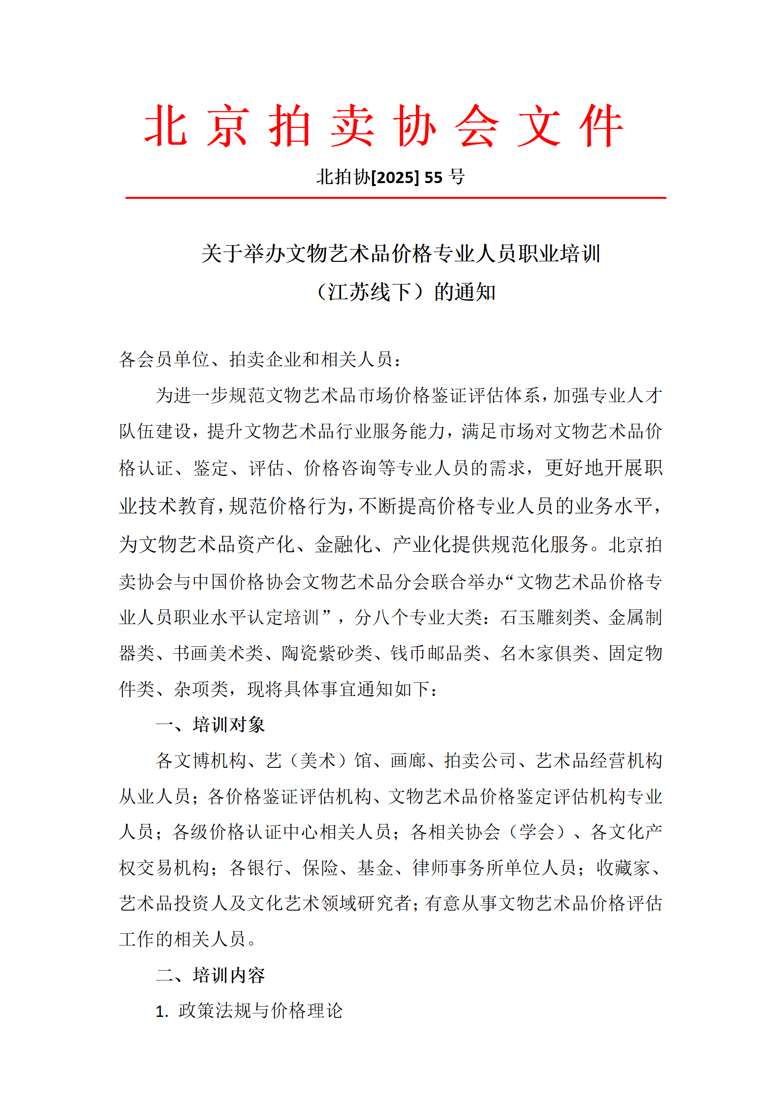 關于舉辦文物藝術品價格專業(yè)人員職業(yè)培訓(江蘇線下)的通知