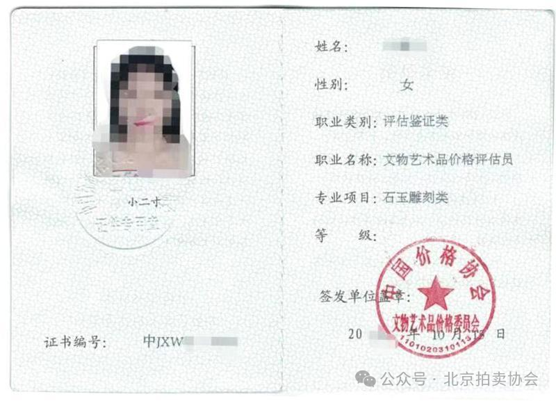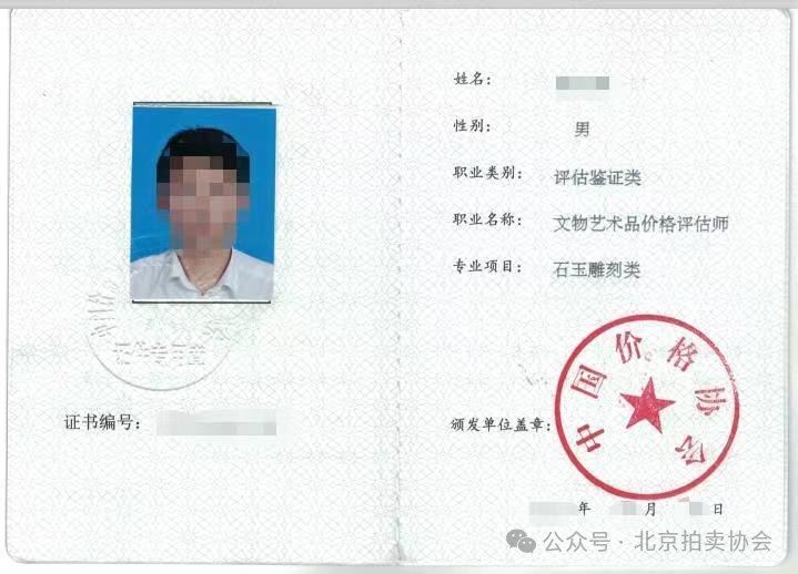 “文物藝術品價格員” “文物藝術品價格評估員”證書式樣: