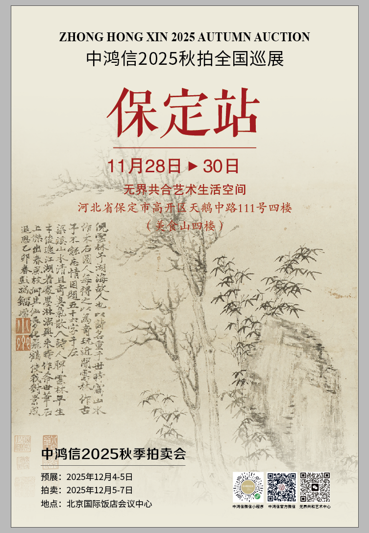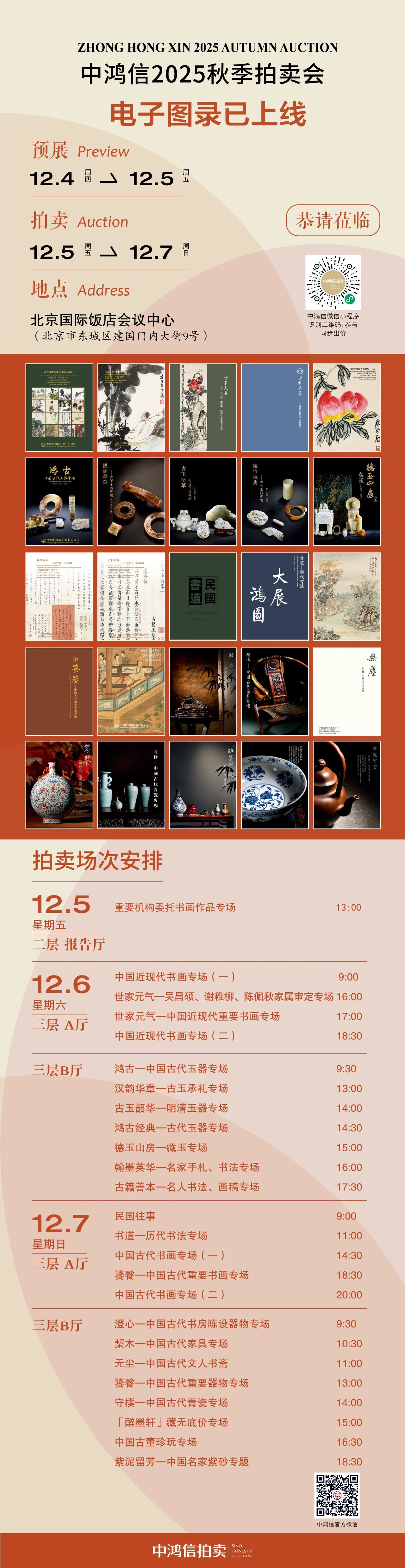 ——中鴻信2025秋拍巡展五城聯動12月3日-7日北京國際飯店會議中心敬請蒞臨!