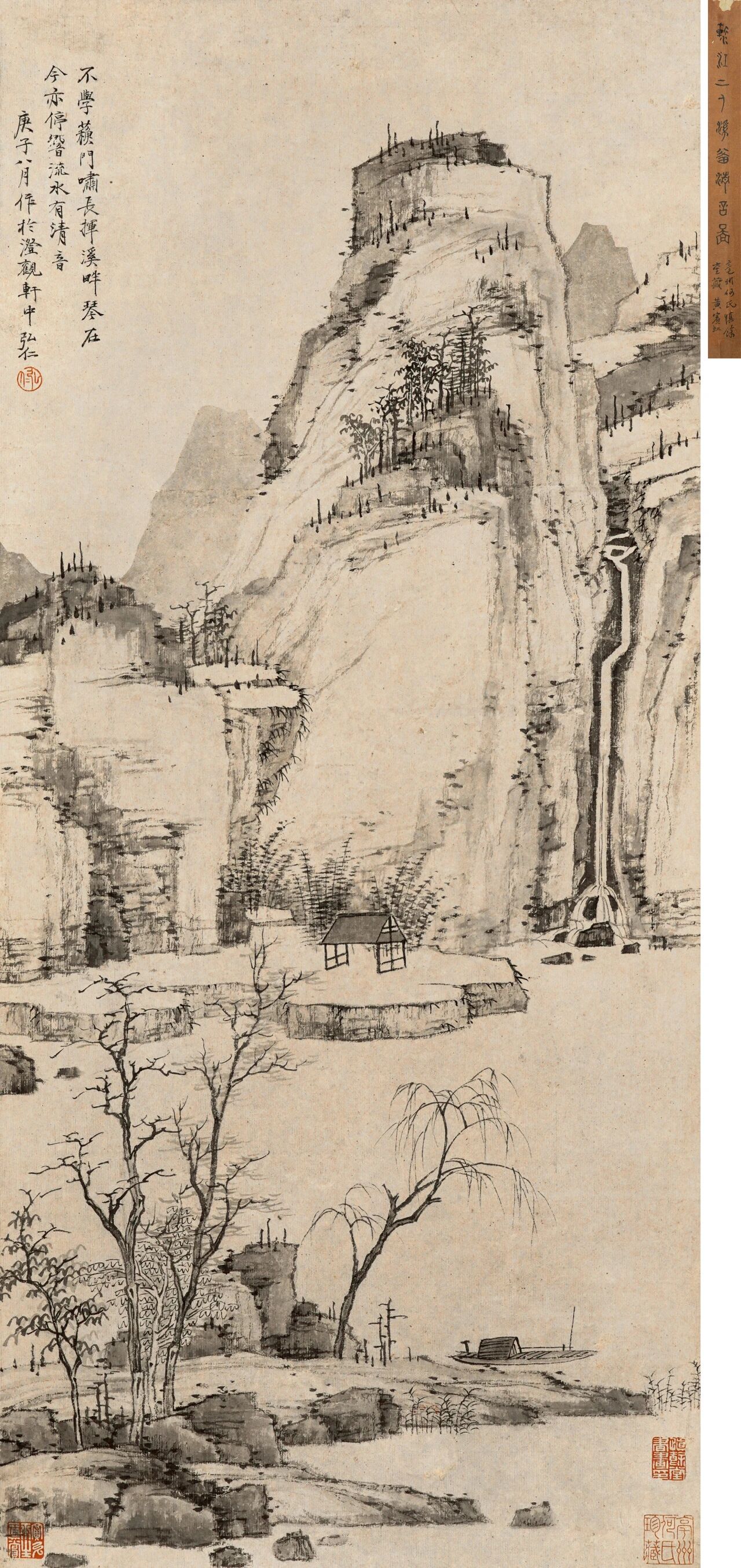 【款識】不學蘇門嘯,長揮溪畔琴。在今亦停響,流水有清音。庚子八月作于澄觀軒中,弘仁。