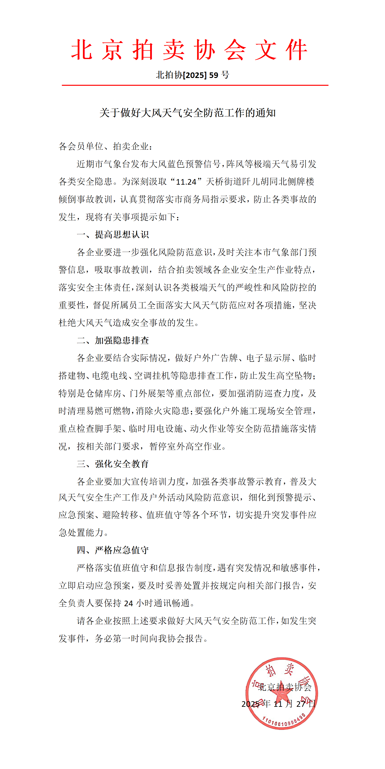 關于聯合開展“誠信筑基 消費發力”——2025金秋文物藝術品拍賣季活動的通知