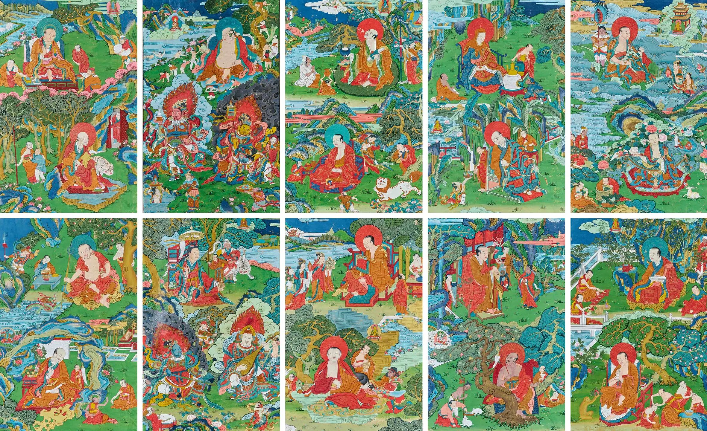 諸羅漢與四天王唐卡(一組十張)
