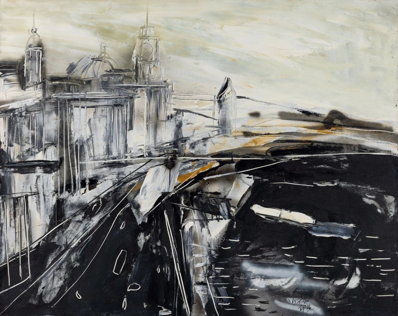 簽名:1996.4 鋒植(右下)1996.4 (145×182) 劉鋒植 《上海外灘》(背面)