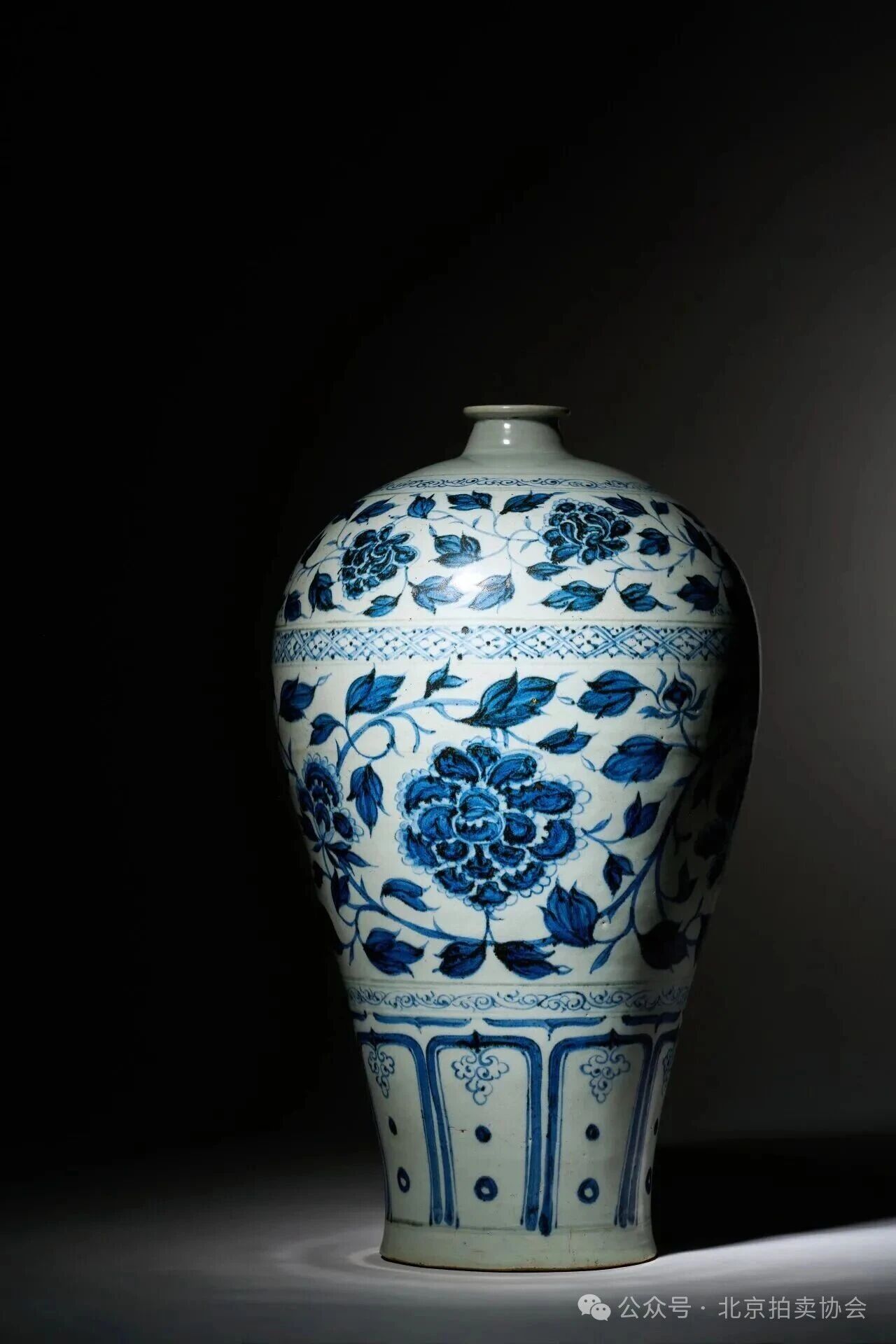 瓷器及工藝品精擷元明清三代140余件佳作,以各色釉彩結合器型豐斂,獨具溫雅東方意蘊。至元十五年(公元1278年)元政府于景德鎮設立浮梁磁局專司燒造一事,此梅瓶即為元代瓷藝精進之代表,器型高挑,采用五段斗接成型,裝飾一改宋瓷纖薄小巧,雋秀素雅風格,外壁以青花纏枝牡丹為主體,不同紋飾間以唐草紋或菱形紋相隔,筆意酣暢灑脫,盡顯草原民族豪邁風尚。